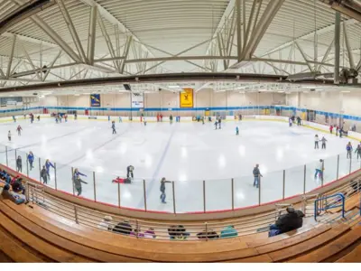 The facility offers seating for up to 1,100 guests and includes a spacious lobby, private meeting room, concession area, skate rental, five team changing rooms, and two smaller changing rooms.