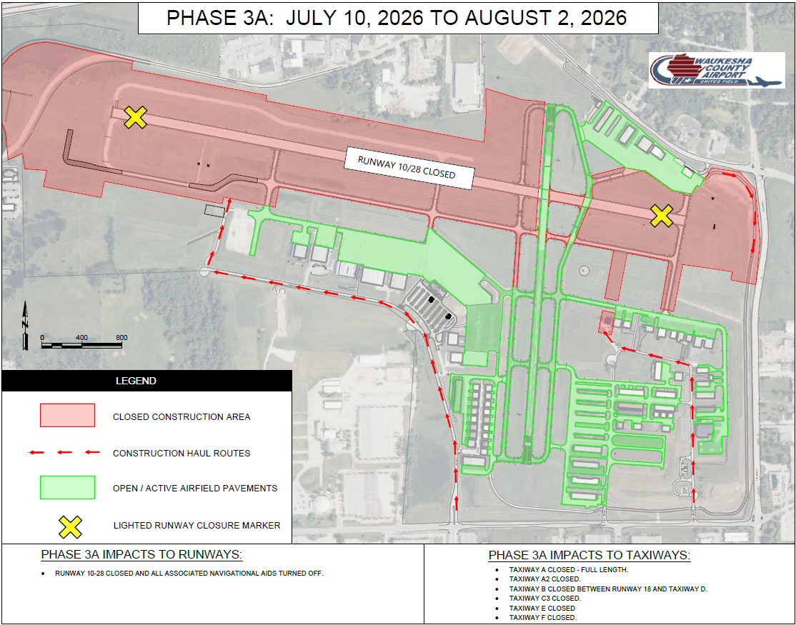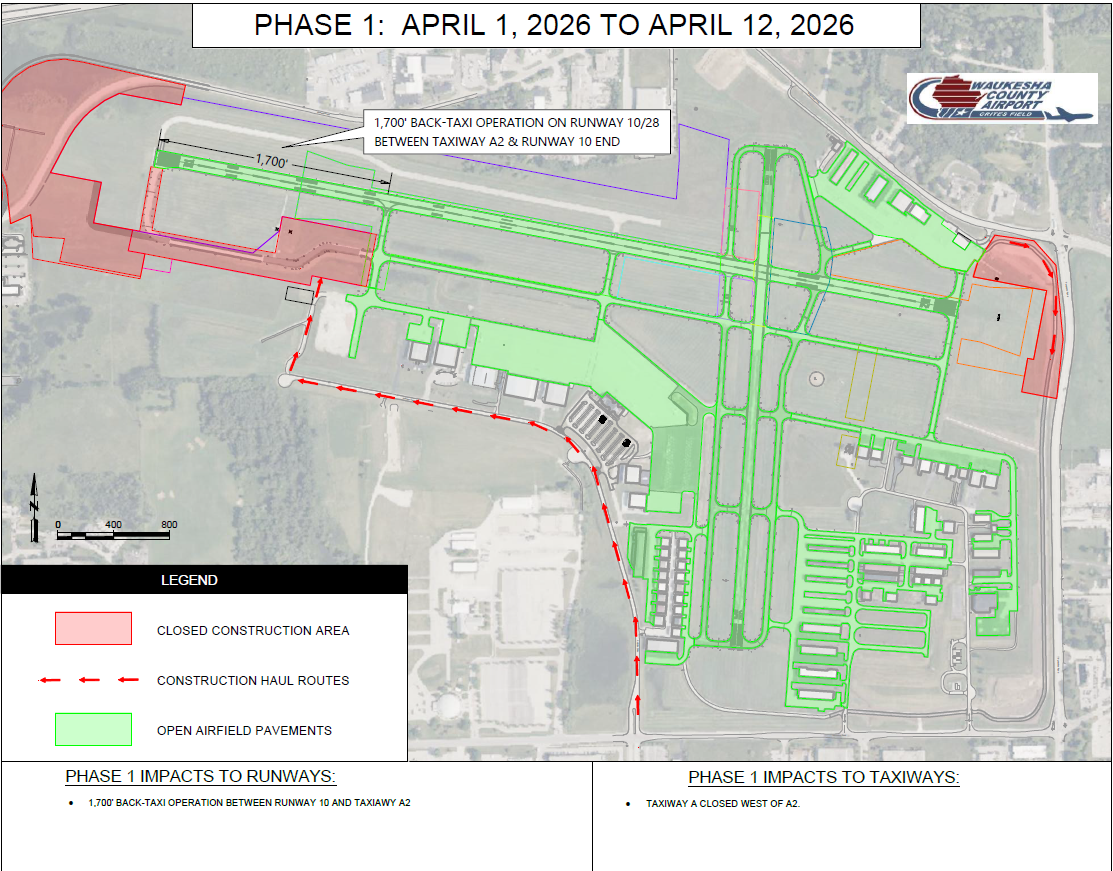 · March 30, Taxiway A from A2 to the approach end of 10 will be closed.